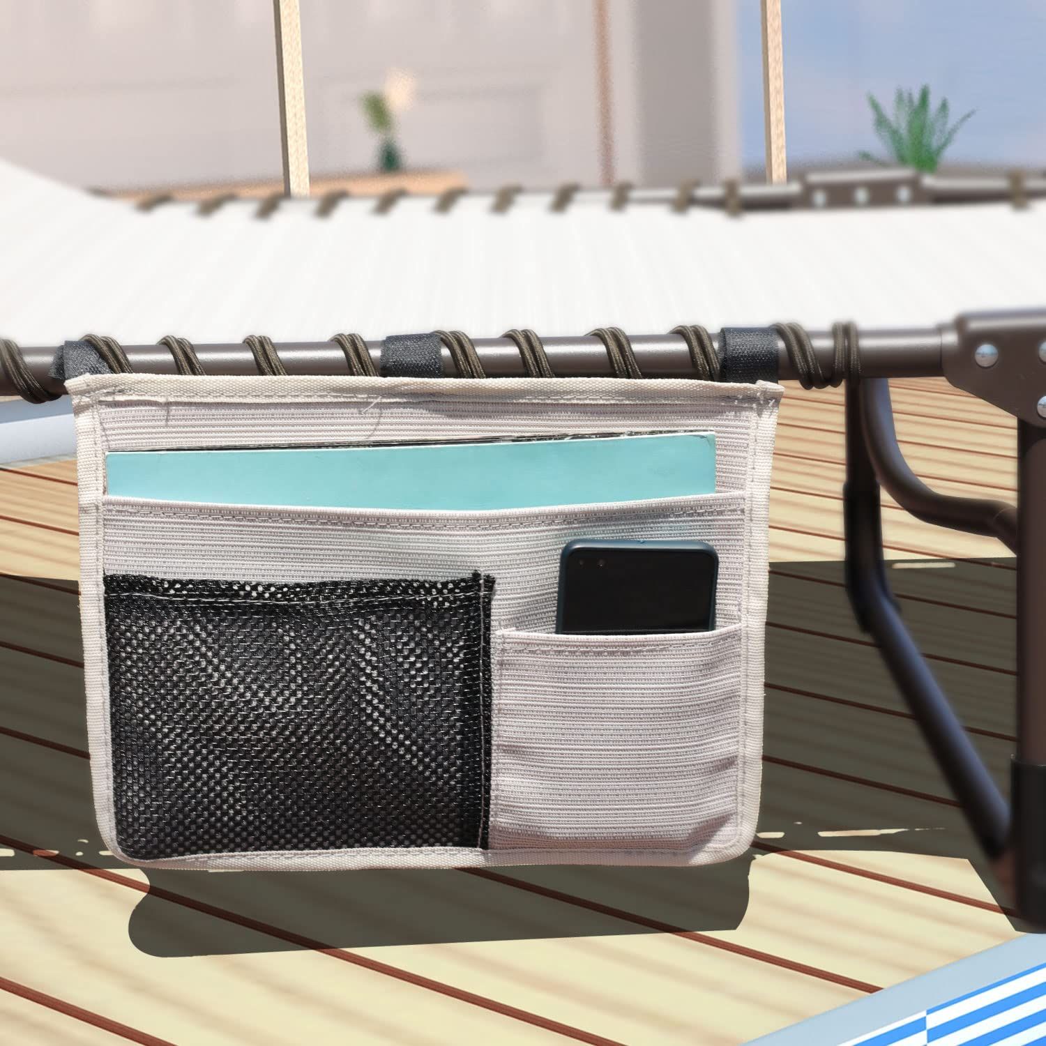 2.Folding lounge chair upgraded with sturdy steel frame and Breathable Textilene fabric for longevity,and each lounge designed with a Side Pocket,Great for storing your Phone,Pad, water bottle,Magzines, books & More.