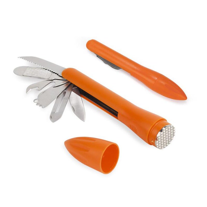 2.The knives and the meat tenderizer all are made of high quality food grade stainless steel,they are rust-proof,sharp,wear-resistant,sturdy,durable and has a long service life. the shell of these multi-functional tools are made of high quality ABS material.