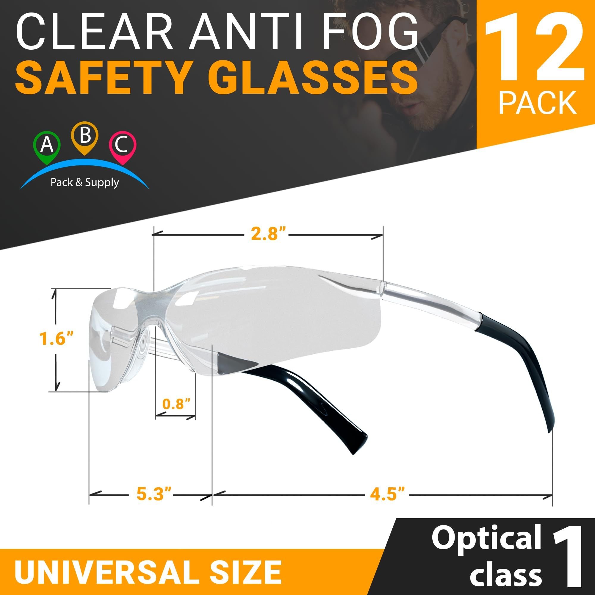 1.12 Pack of Clear Anti-Fog Safety Glasses, One Size. Dive into tasks with youth safety glasses, crafted from high-quality polycarbonate. Lightweight and rimless, eye protection glasses ensure clarity without compromising style or comfort.