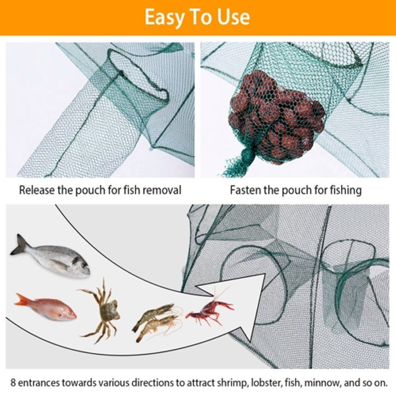 Sides of the net comes with an entrance separately to let the fish, shrimp, minnow, lobster and crab swim into the trap conveniently.