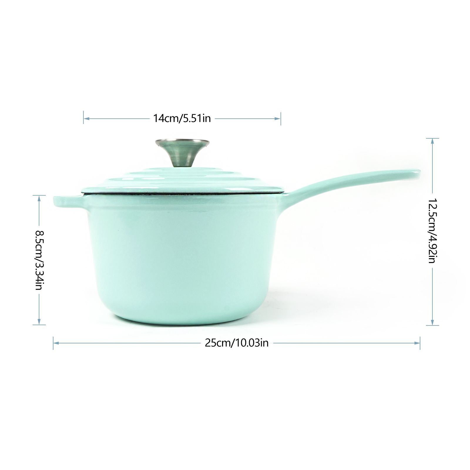 Our HAWOK cast iron sauce pans, with their excellent heat retention and ability to cook food evenly, are ideal for a variety of cooking techniques such as boiling, sautéing, braising, roasting, baking, broiling, and more. It is heat-safe even at high temperatures of up to 500°F. Our pan is coated all over with super-smooth enamel, which seals the cast iron to keep foods from sticking and crusting. The long handle provides balance and leverage and the support handle makes it easy to move around your kitchen. The wide stainless steel knob on its cast iron lid provides a secure grip and has a perfect seal fit. This avoids spillovers and locks in moisture and nutrition when cooking. The thick lid is formed by micro-pressing, so it is not easy to overflow the pot. The evenly distributed drip bumps on the lid accelerate the condensation of evaporated water vapor and drip it evenly into the food, continually basting the food throughout the cooking process. Our cast iron pan with lid deserves the love and care of a good hand wash. After each use, let it cool and wash the cookware in warm water and a mild detergent. Coming in a variety of colors, you have the freedom to choose which sauce pan is best suited for your home. With its glossy and vibrant porcelain finish, it is sure to add life to your kitchen!