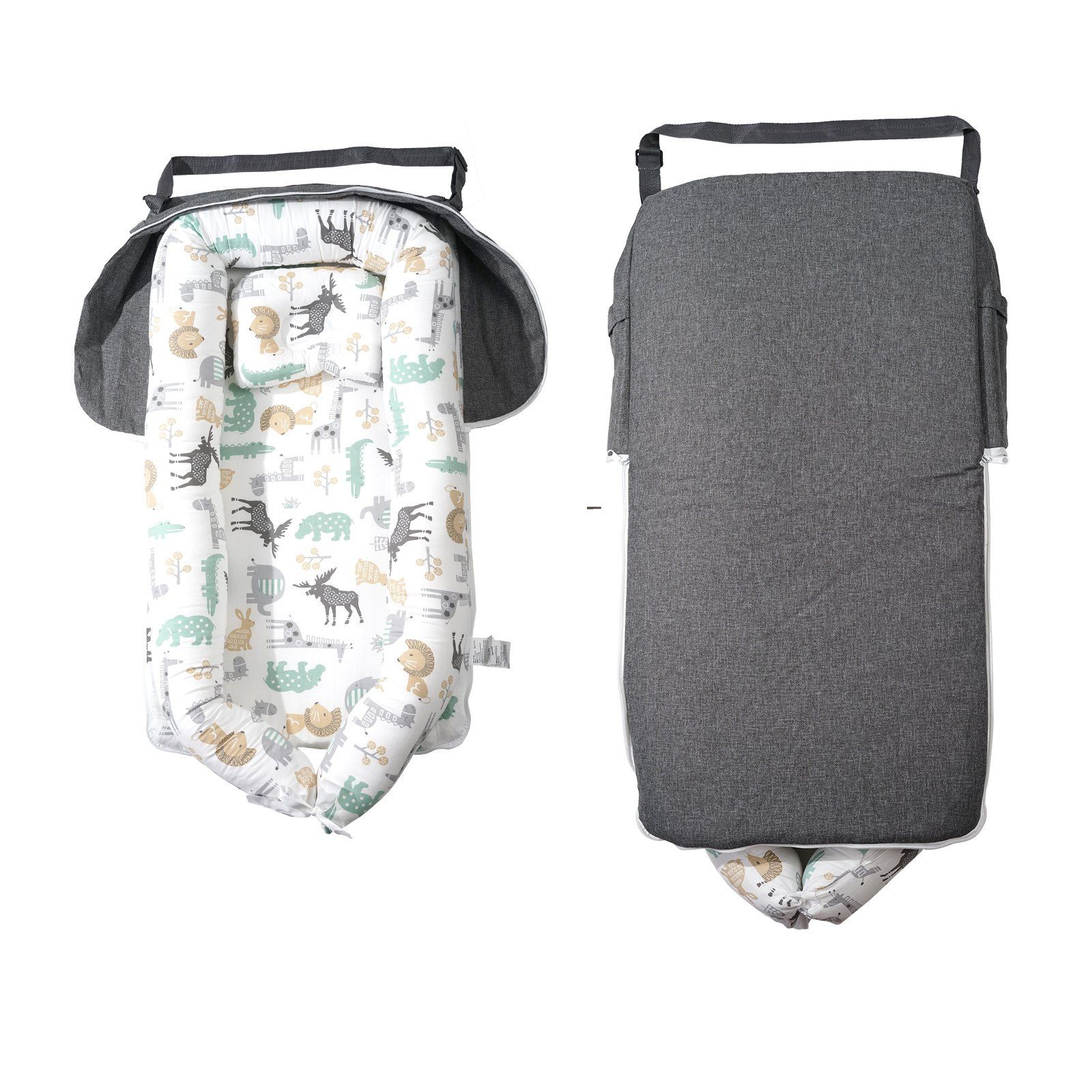 4.Ready to Go: This baby nest lounger can easily convert into a portable bag, making travel convenient. Whether you carry it by hand or wear it on your shoulder, you can provide your baby with a comfortable sleep space anytime. And the detachable, machine-washable cover simplifies daily maintenance and saves you time.