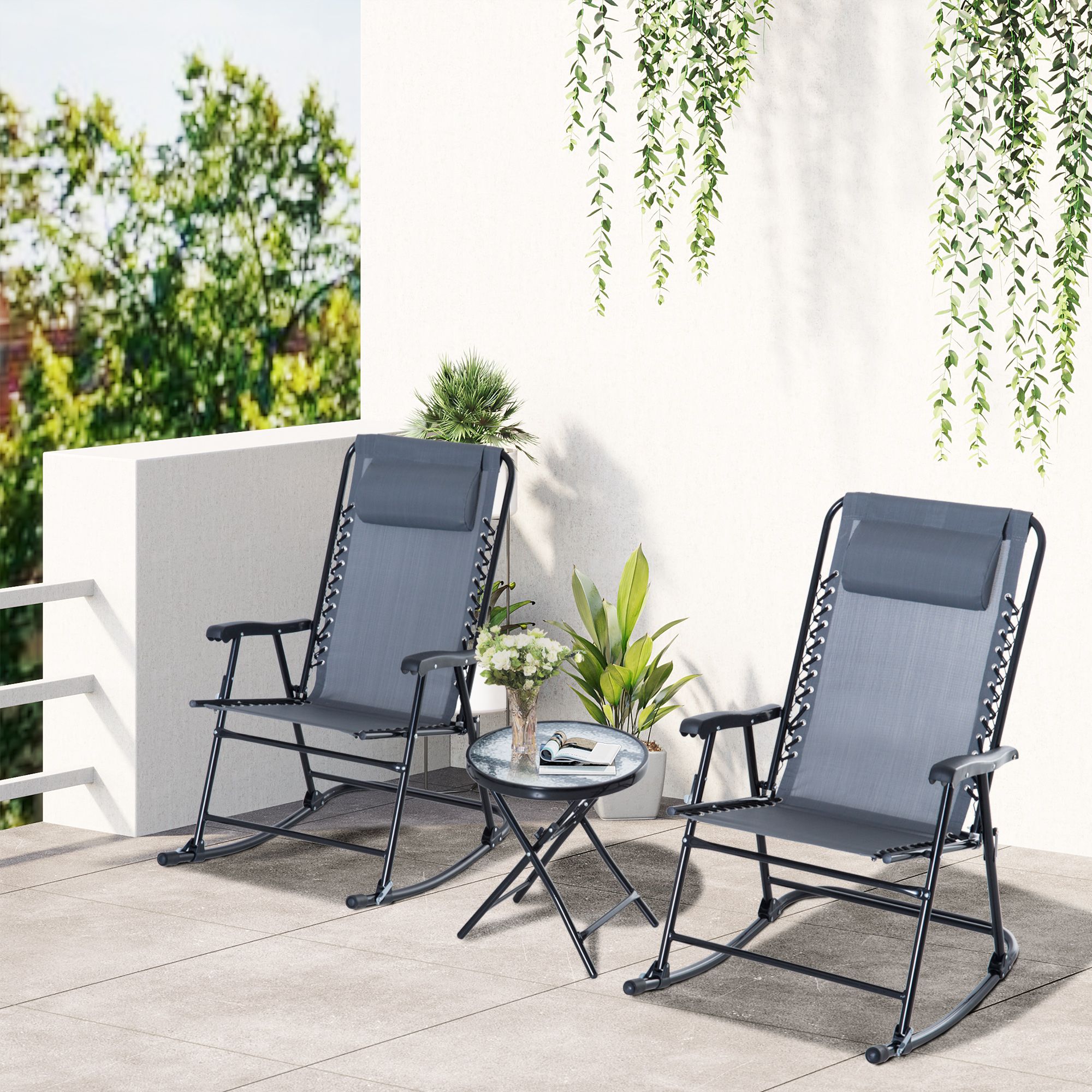 Home > Outsunny 3 Piece Outdoor Rocking Bistro Set, Patio Folding Chair Table Set with Glass Coffee Table for Yard, Patio, Deck, Backyard, Grey