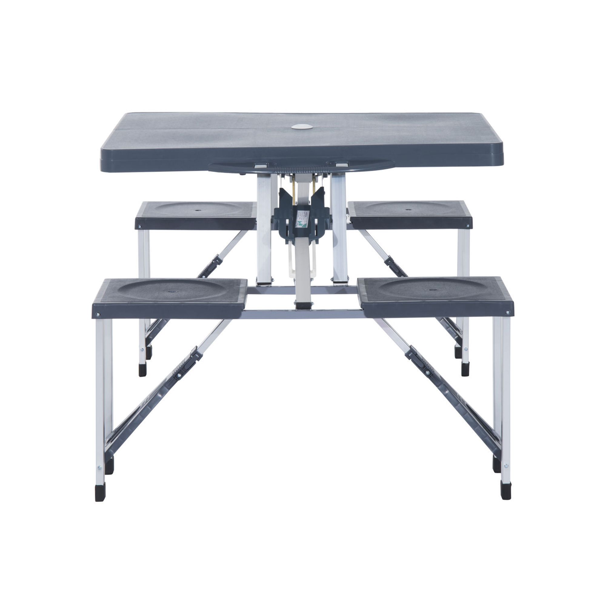 Outsunny Folding Picnic Table with Seats and Umbrella Hole, Portable Camping Chairs Set, 4-Seat, Aluminum Frame, Dark Gray Outsunny Folding Picnic Table with Seats and Umbrella Hole, Portable Camping Chairs Set, 4-Seat, Aluminum Frame, Dark Gray Outsunny Folding Picnic Table with Seats and Umbrella Hole, Portable Camping Chairs Set, 4-Seat, Aluminum Frame, Dark Gray