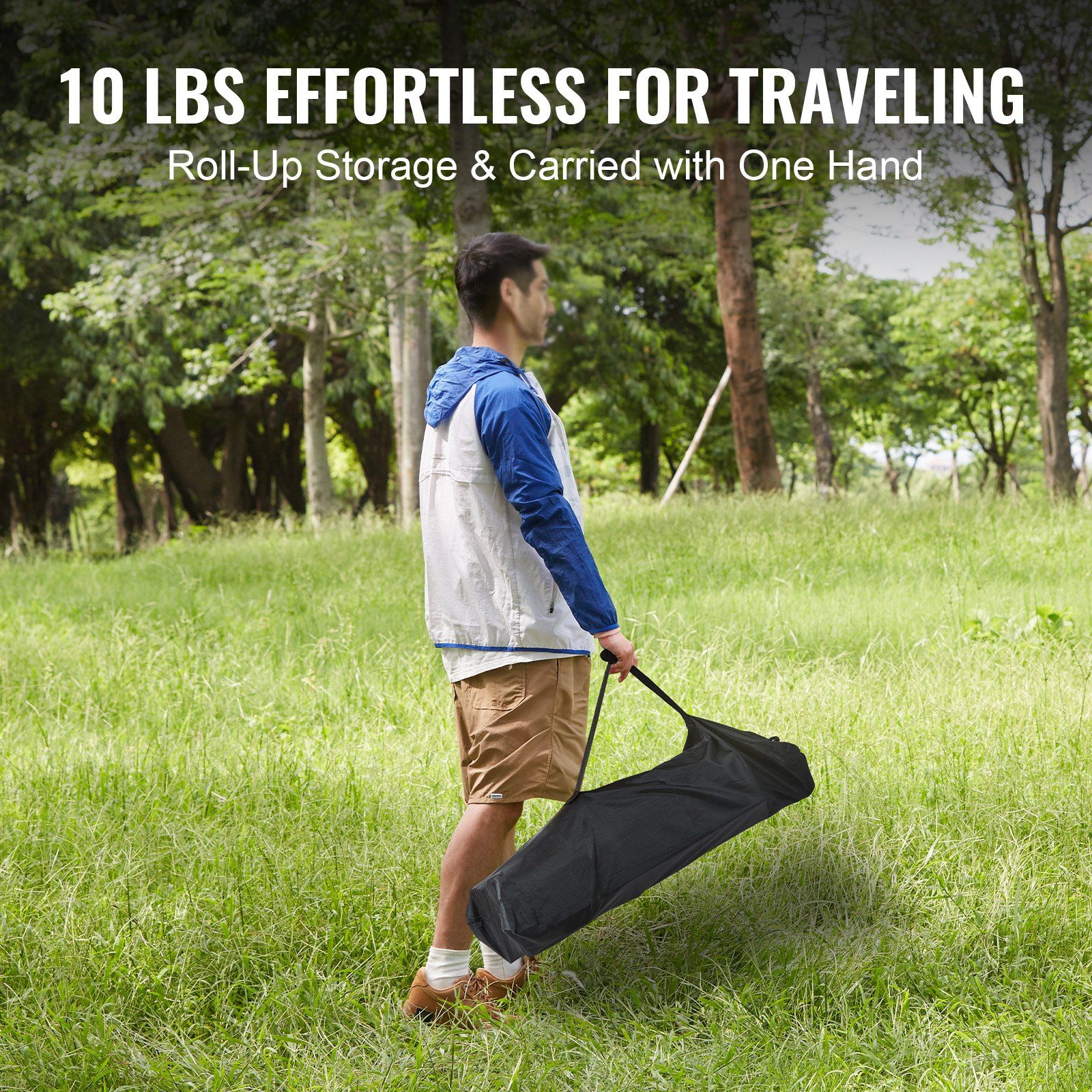 This folding table weighs only 10 lbs, making it effortless to carry with just one hand. Its smart folding design makes storage a breeze, occupying minimal space in your vehicle and providing you with endless convenience.