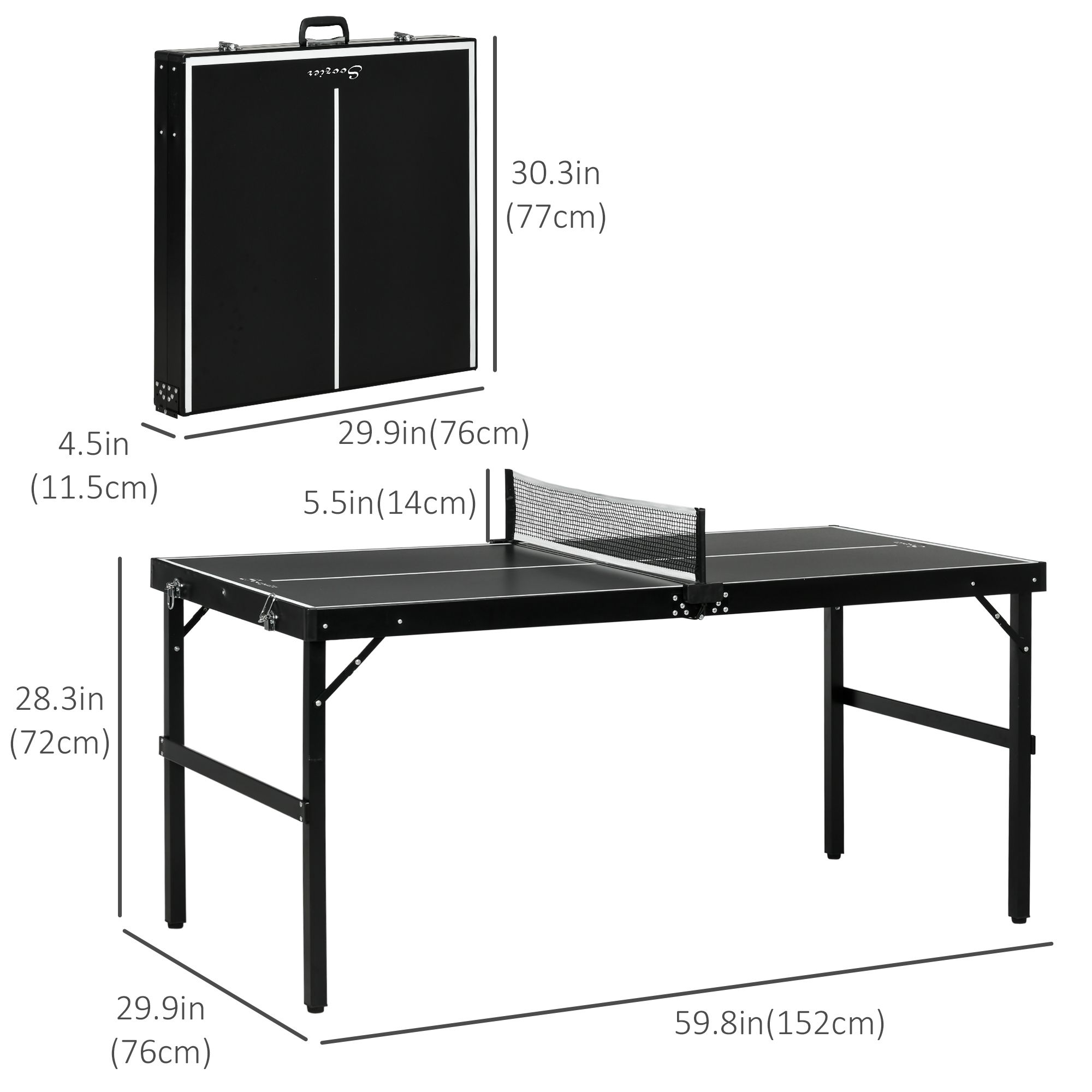 • Ping Pong Table Info: Overall dimension: 59.8" L x 29.9" W x 28.3" H (152 x 76 x 72 cm). Folded dimension: 29.9" L x 30.3" W x 4.5" H (76 x 77 x 11.5 cm).