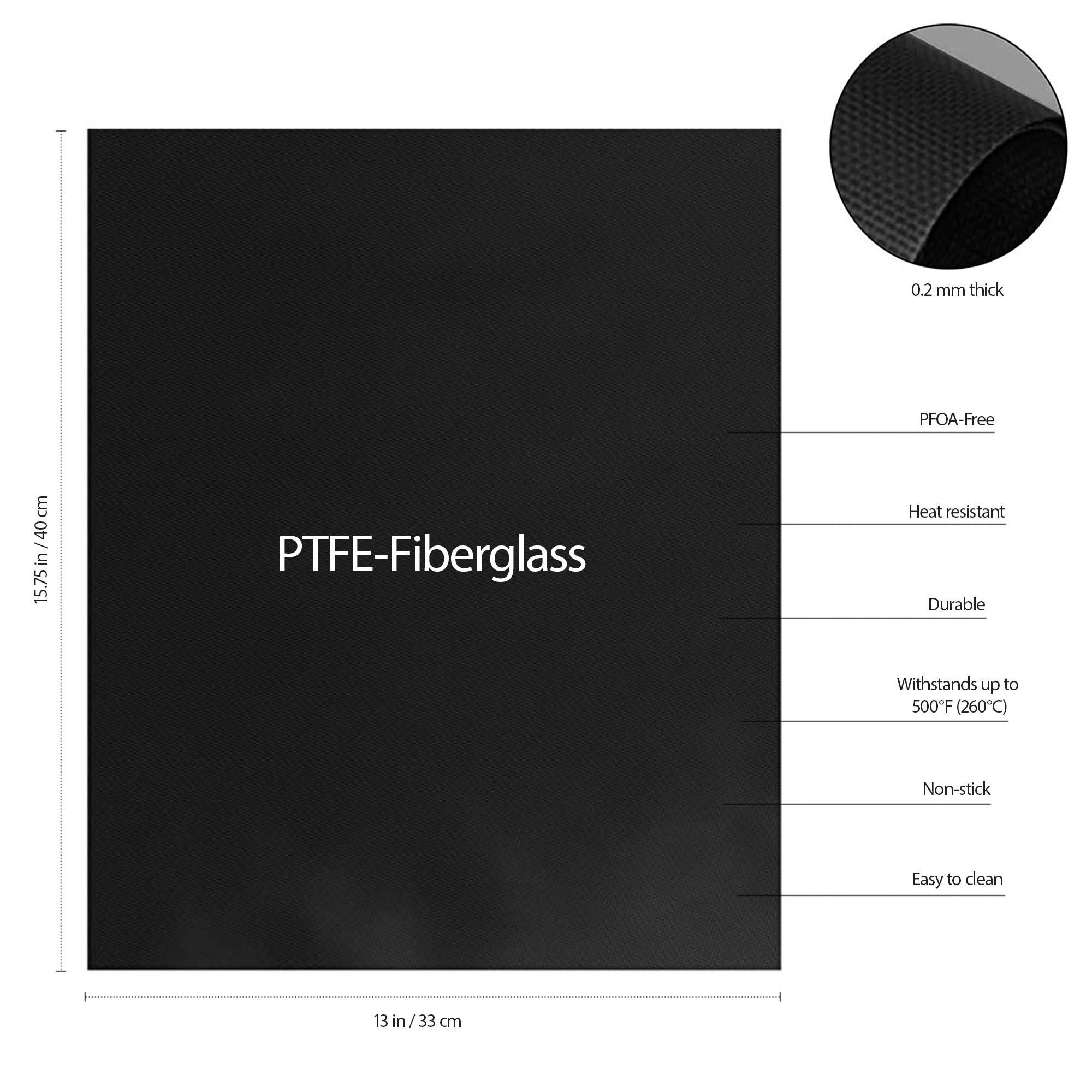 2.ptfe-fiberglass coating. it has no silicone or other dangerous chemicals. high temperature resistance and durablity these mats are heat resistant and come with unique 0.2 mm thick design. it withstands up to 500°f (260°c), don't burn or shrink. non-stick and reusable barbecue mats are reusable and non-stick. you can grill without grease which will reduce the intake of cholesterol. multifuctional grill sheets work with any kind of barbecue grill: gas electric charcoal grills oven