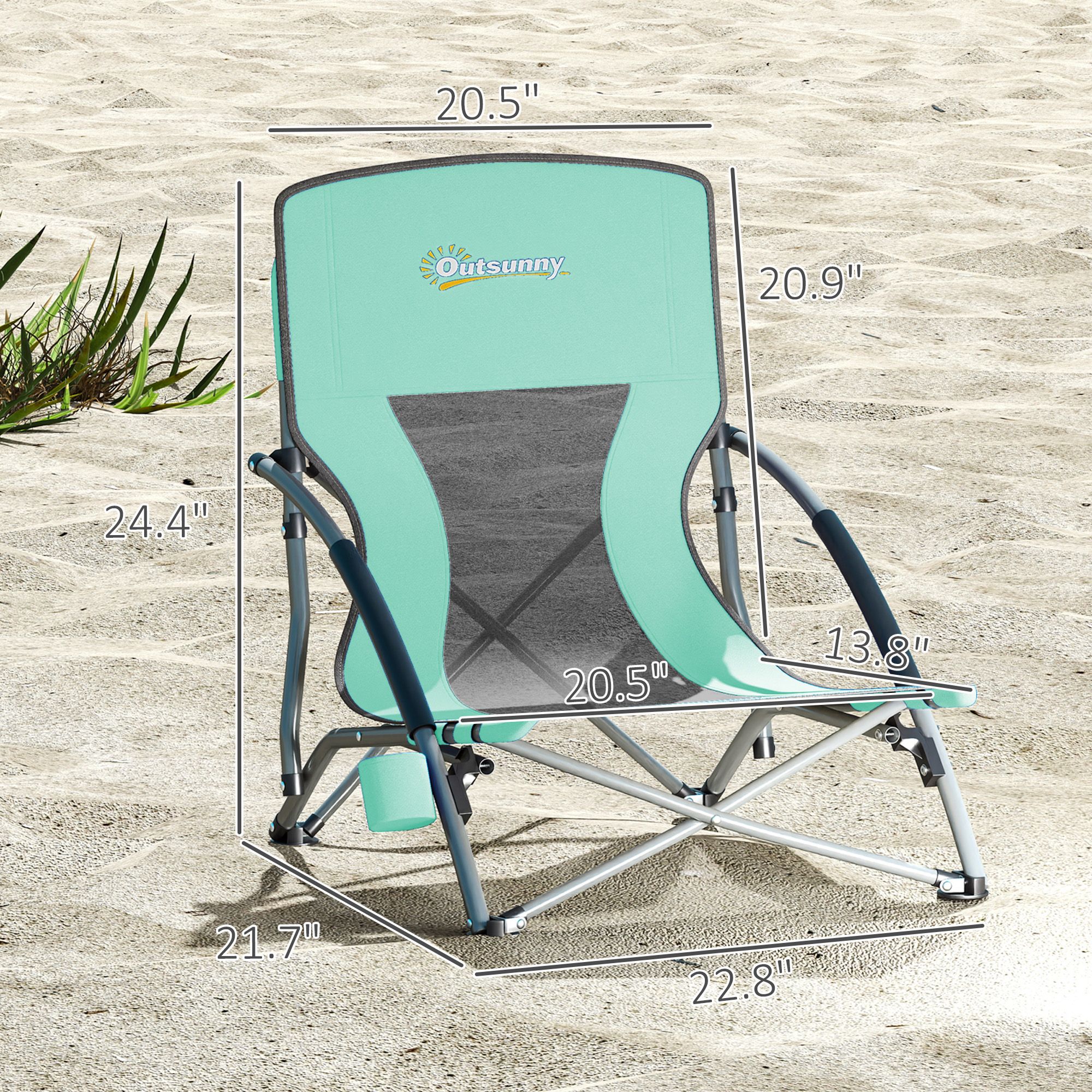 Discover the ease of sunny days with the Outsunny beach chair set! These two lightweight portable chairs weigh just 5 lbs. each and come with a handy carry bag. Features include a breathable mesh backrest for cool comfort and foam-padded armrests to protect you from skin contact with hot metal. Each beach chair comes with a cup holder and is great for beaches, camps, concerts, and other outdoor activities.