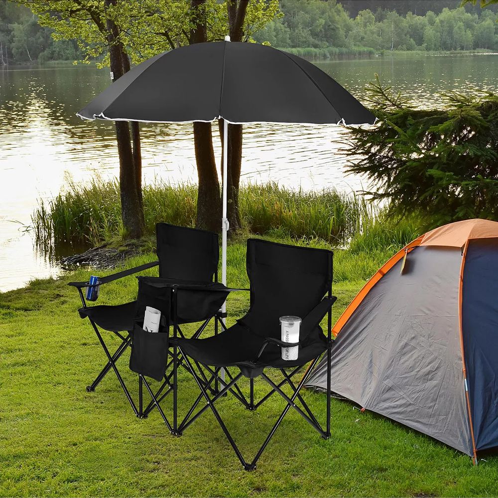 5.Wide Application: Designed with 2 seats, these double folding camping chairs allow you and the one you loved to enjoy outdoor leisure time. These portable camping chairs with umbrella are suitable for different places, such as patio, backyard, poolside and beach, etc.