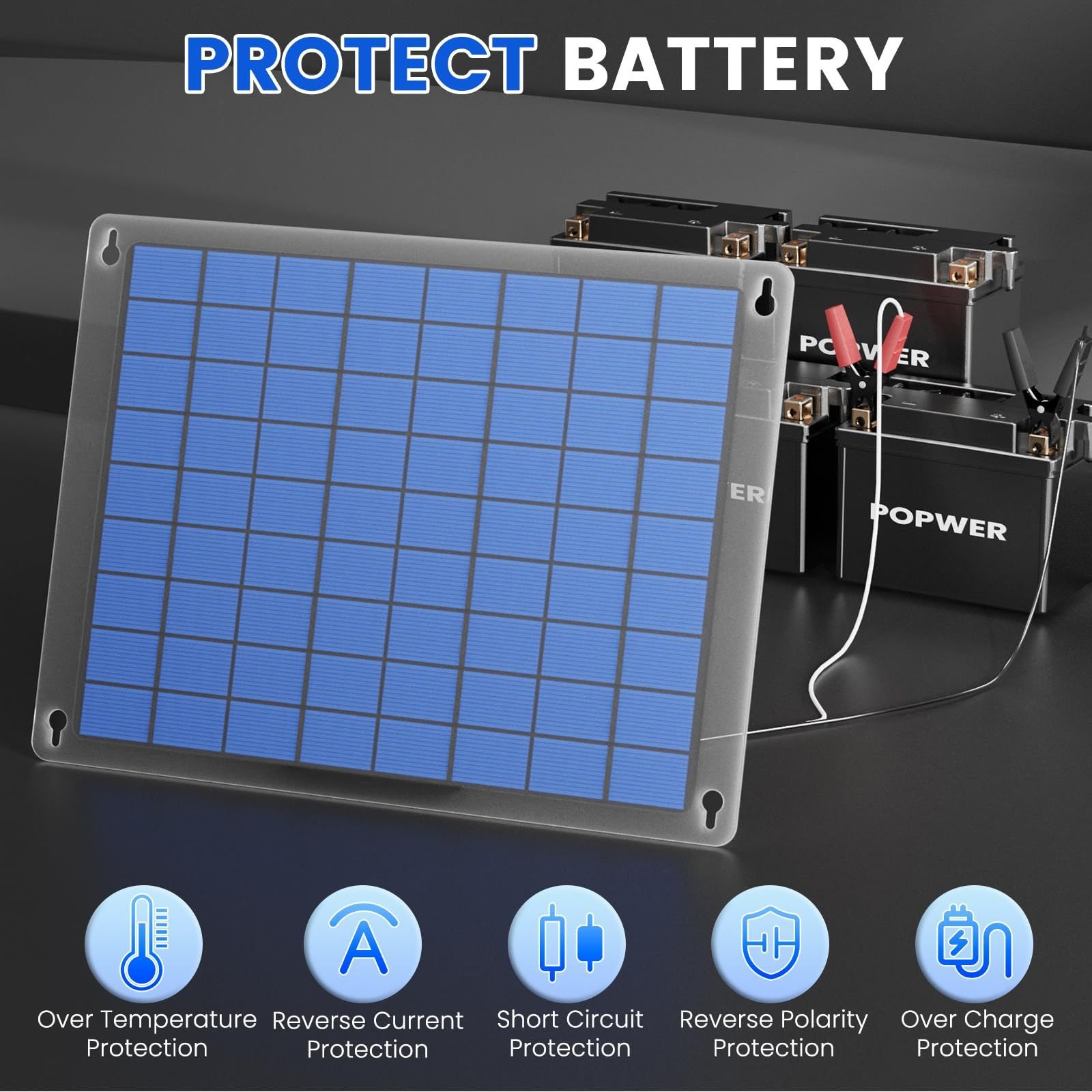 [Upgraded circuit protection] Excellent safety circuit is built in the junction box, which can not only prevent the battery from overcharging and reverse charging but also protect and prompt the reverse connection of the circuit (when the red light is on).