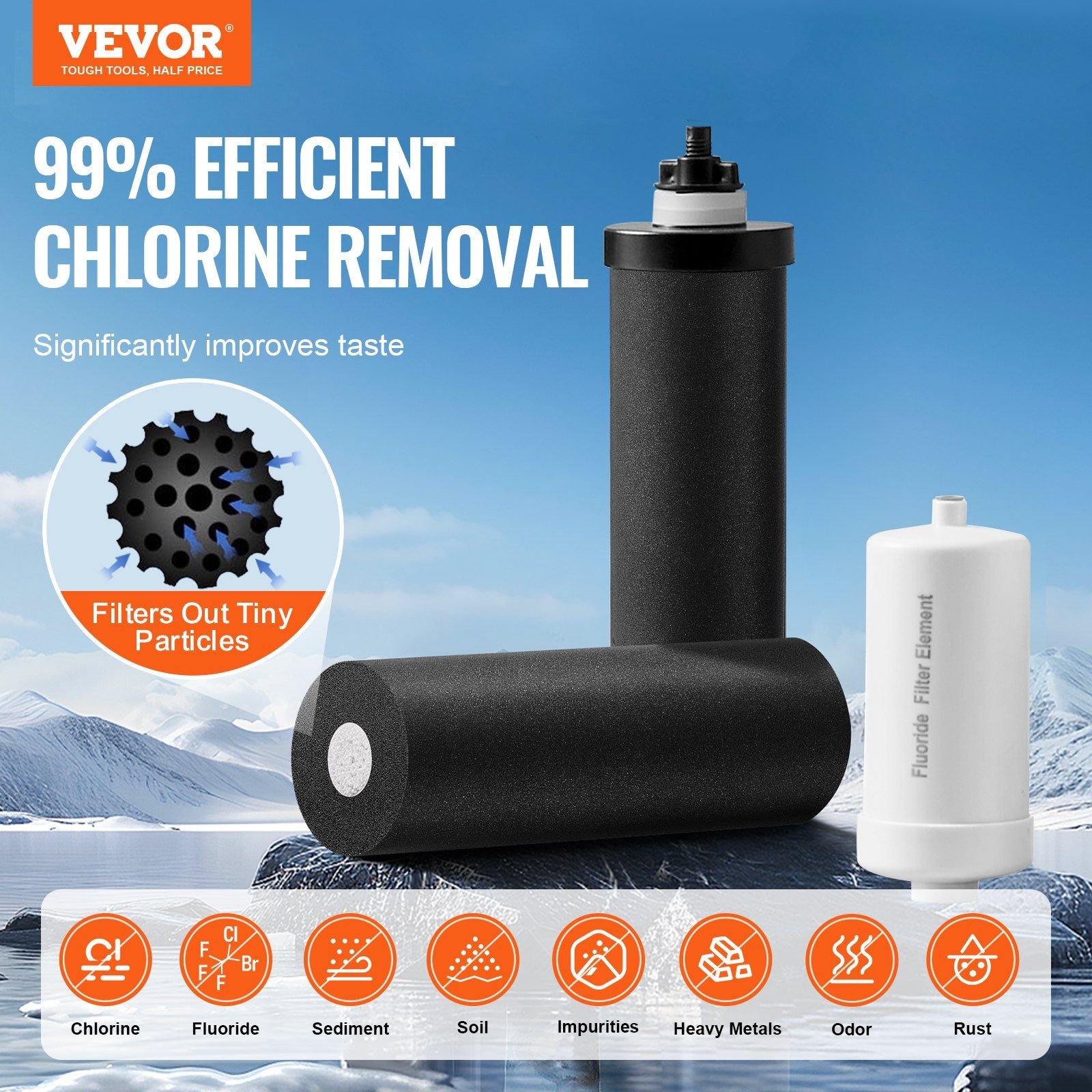 1.Efficient Filtration: The gravity-fed water filter system use activated carbon + fluoride filter as the filter medium, removing 99% of chlorine, and some fluorides from water and improving its taste. It also reduces heavy metals, sediments, rust, soil, and other impurities, ensuring clean and healthy water.