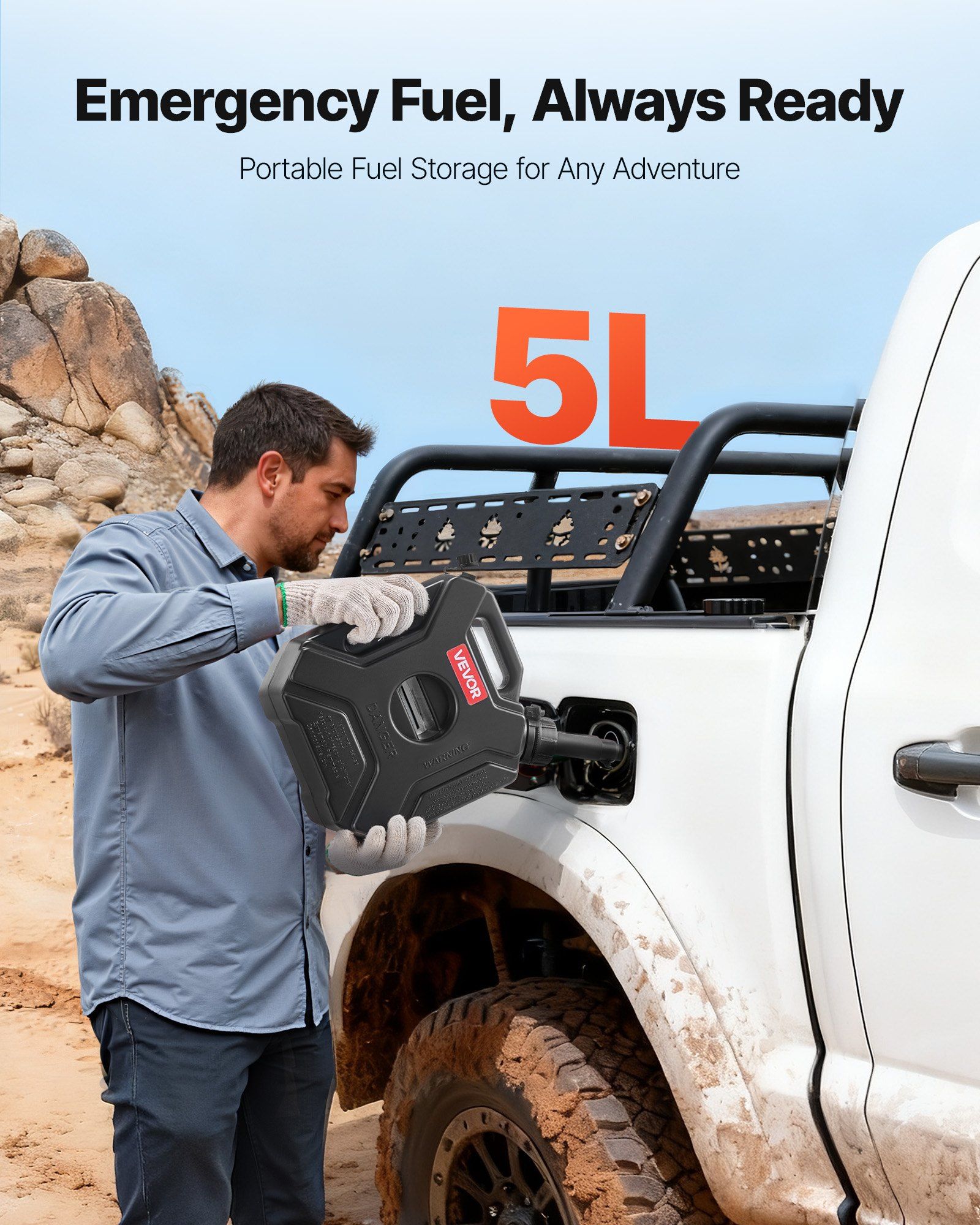 1.Compact Size: Need backup fuel without losing trunk space? This 5 L fuel container slips right in! It's light, portable, and ready for road trips, camping, or outdoor work