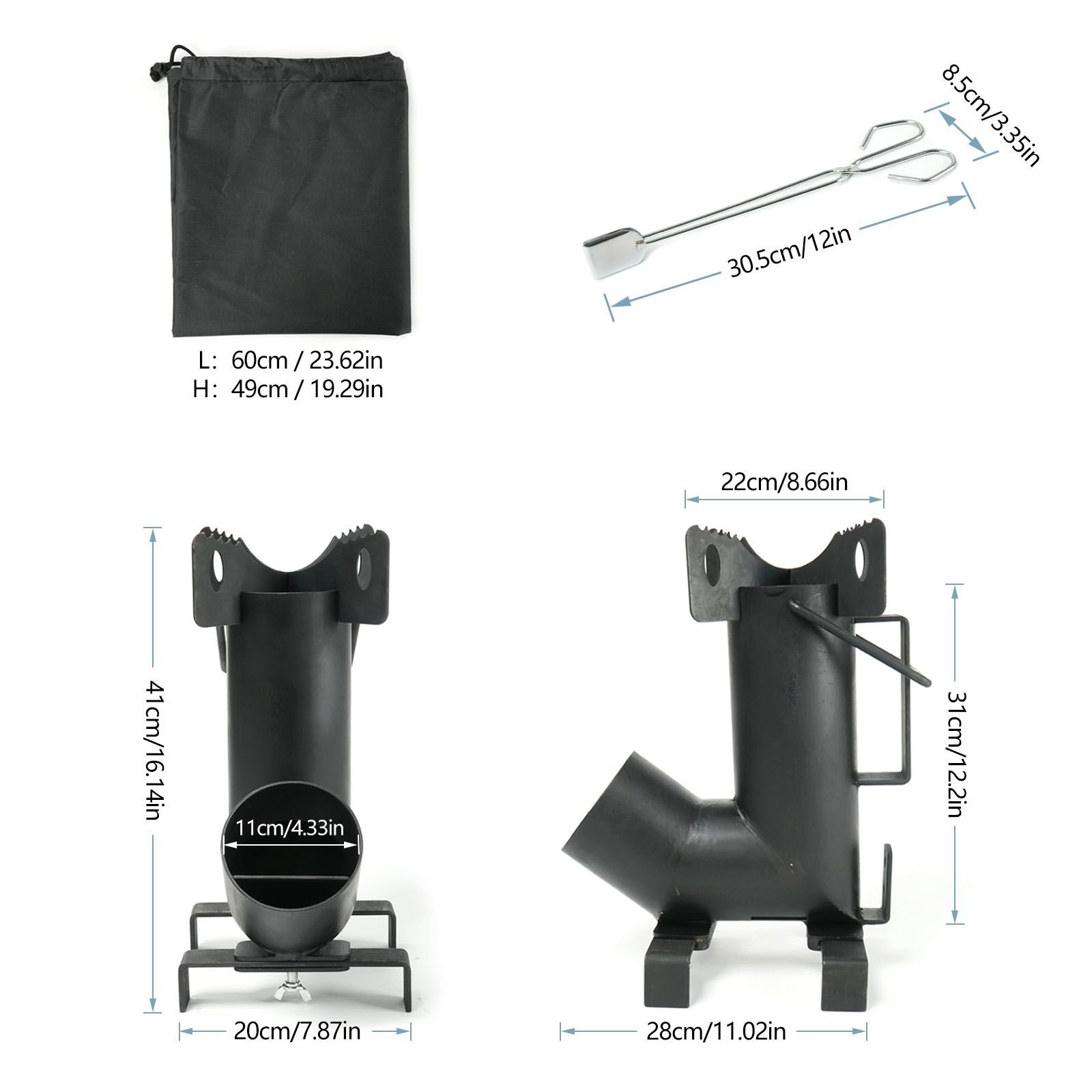 HAWOK Wood Burning Rocket Stove, Camping Rocket Stove with Fireplace Tongs & Storage Bag, Ideal for Outdoor Camping, Picnic, BBQ, Hunting, Fishing